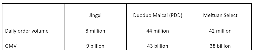 Xingsheng was the CGB start-up that made all the big players curious about CGB. It had Meituan, Alibaba, JD and Pinduoduo managers travelling to Changsha, Hunan to see what Xingsheng was up to. And how it had managed to bring the internet to the ‘sinking market’. According to someone close to Yue Linhua, Meituan actually offered to buy the company for $10 billion, an offer Yue refused because he considered copycat Meituan unworthy of his innovative company. So, Meituan had no choice but to start Meituan Select. [11] When Pinduoduo noticed a significant market share loss to Xingsheng in Hunan, they hurriedly set up Duoduo Maicai in 2020.