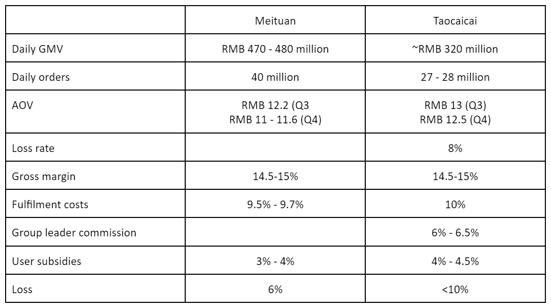 Taobao Maicai plans to ‘refine operations’ to reduce commissions to group leaders and subsidies to consumers (the latter from 5% to 2.5% through increased loyalty). Commission to group leaders will decrease when they rely on more than one platform (as many do).