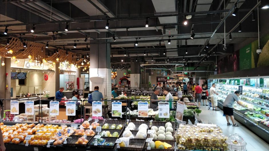Inside a Hema Neighbourhood, Shanghai, July 2023.