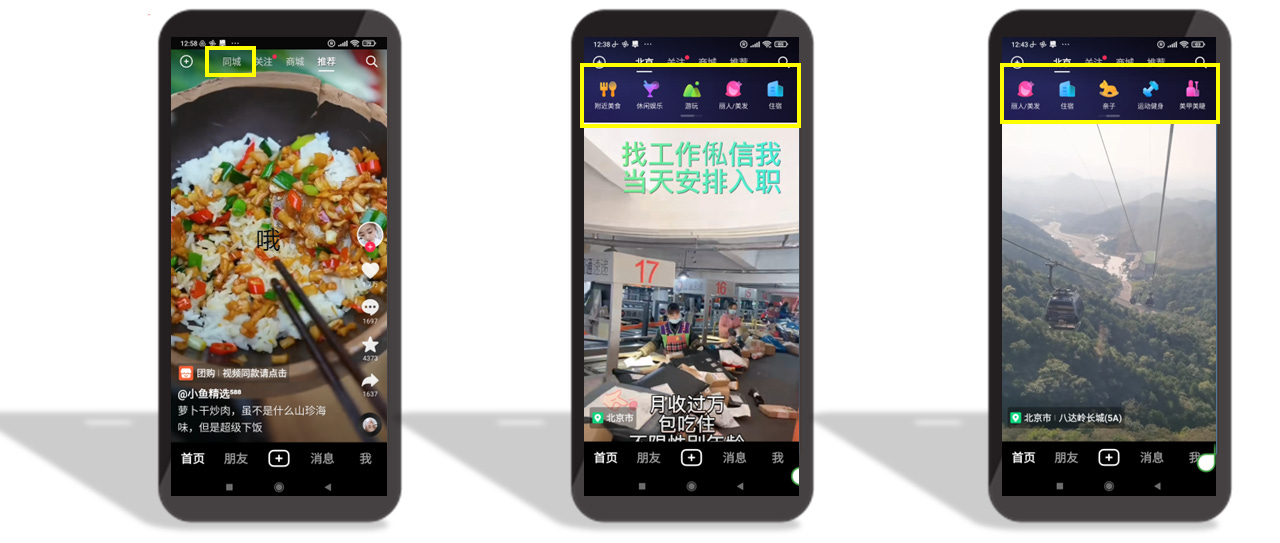 Douyin’s same city menu.