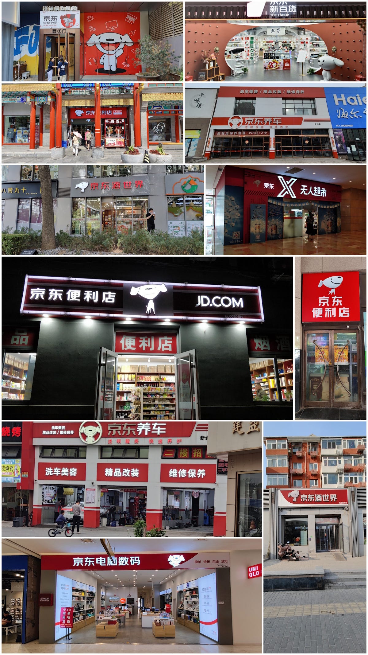 Unlike Alibaba, JD has always had a strong foothold in offline retail, either through self-operated stores or franchise formulas. The JD brand has been a common sight in the streets of both high-tier and low-tier cities in China. You’ll see anything from computer stores to pharmacies, from mother & baby stores to car maintenance workshops and from liquor shops to (unmanned) convenience stores.