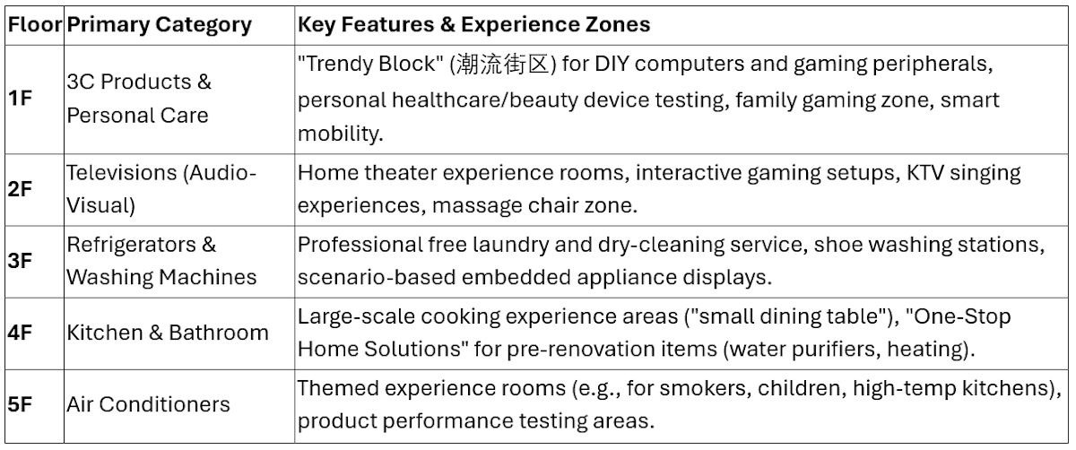 Active Participation vs. Passive Demonstration: Unlike traditional electronics stores, where staff demonstrate products, the JD model requires customers to perform the actions themselves. For example, visitors are guided to make a cup of coffee with an espresso machine, bake cookies using an in-store oven, or test a vacuum cleaner on a deliberately dirtied floor.