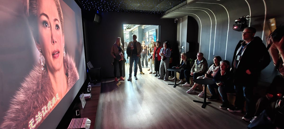 Retail study tour group experiencing the home cinema room.